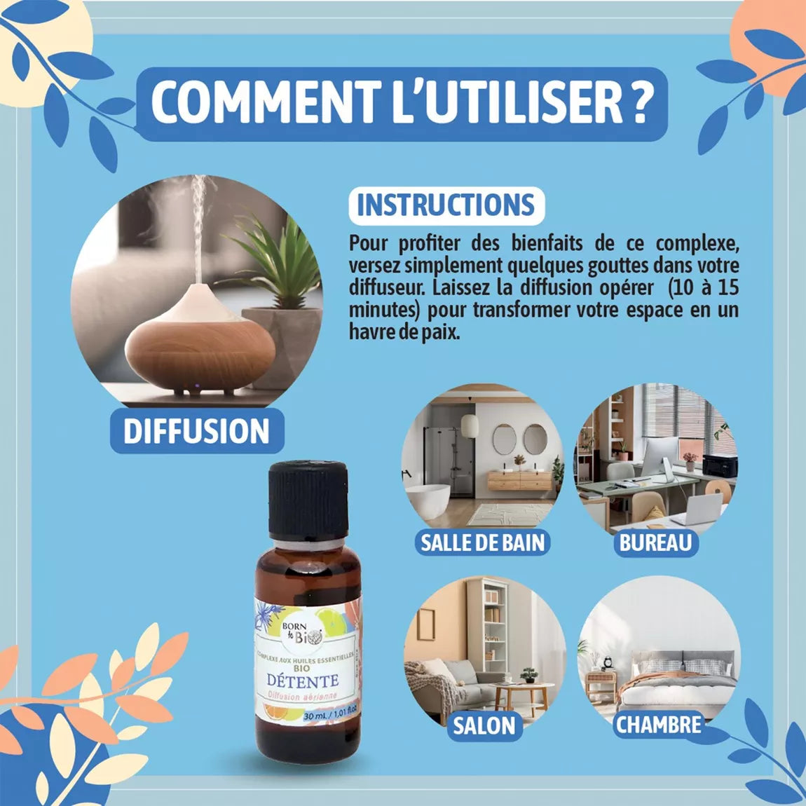 Composée d’huiles essentielles naturelles reconnues pour leurs vertus relaxantes, cette synergie favorise la relaxation, réduit le stress et aide à retrouver un équilibre intérieur.